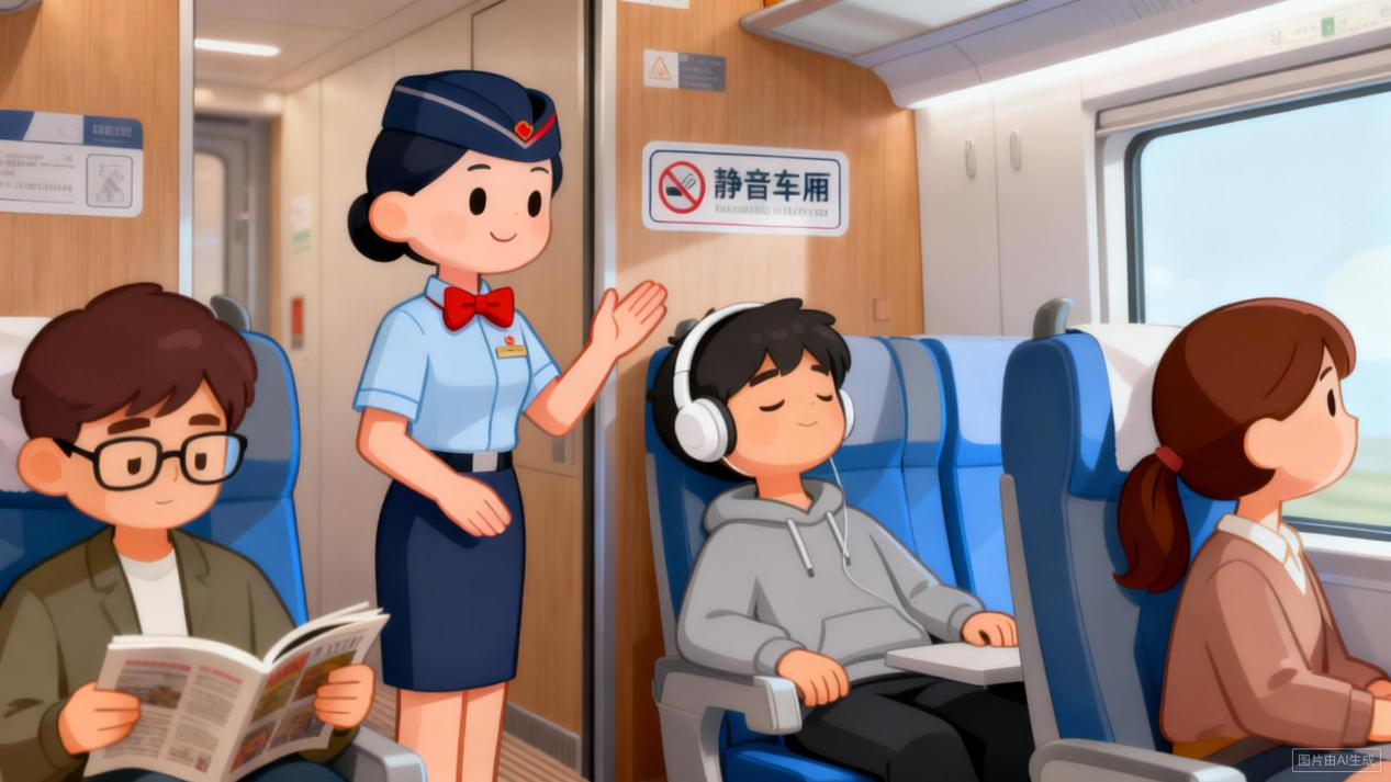 关键提醒:票价与普通车厢一致,无额外费用;未勾选的旅客可在开车前改签剩余静音席位,需重新确认约定;违反规则可能被劝离。