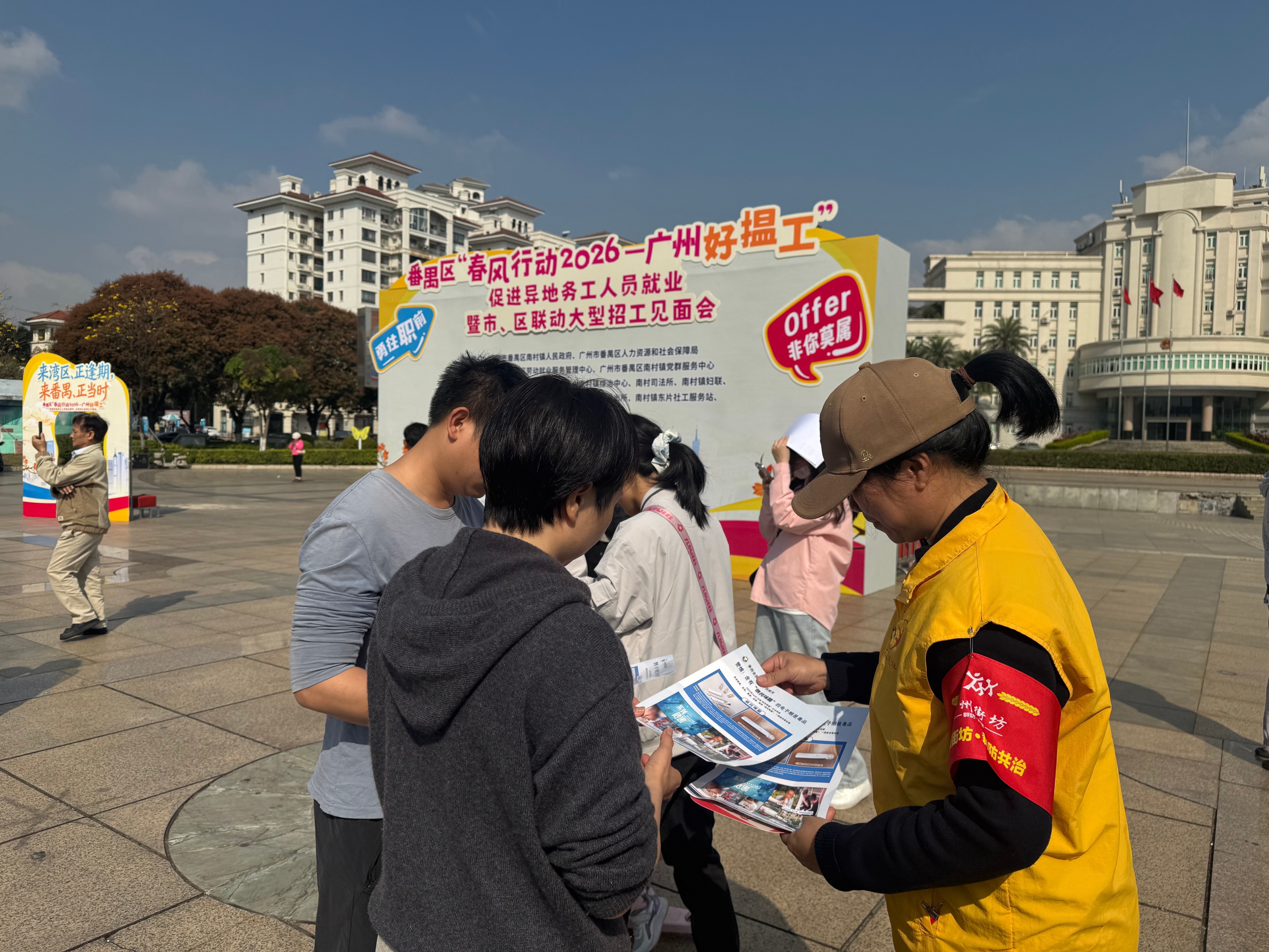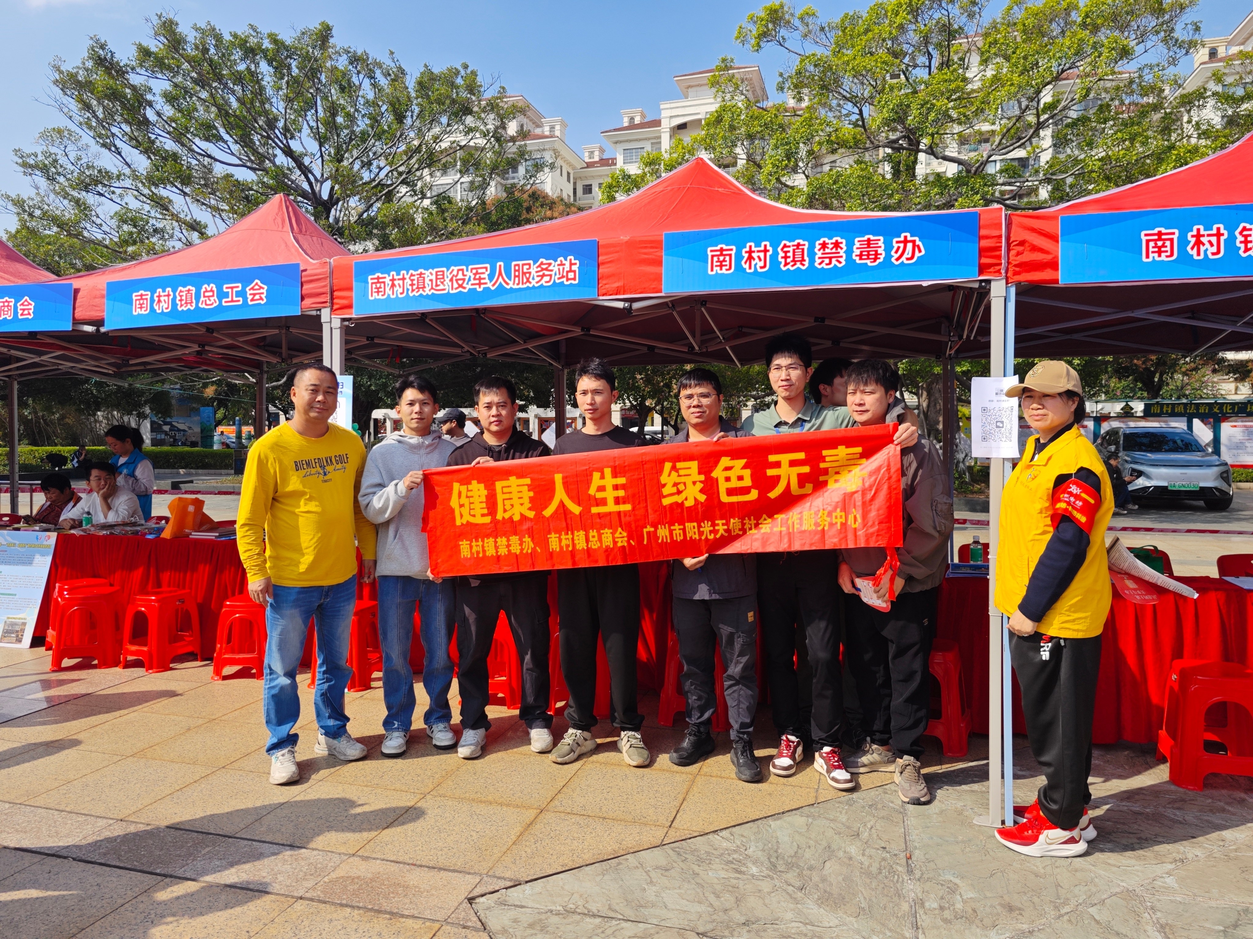 为进一步扩大禁毒宣传覆盖面,增强求职群体识毒、防毒、拒毒意识,2026年3月13日,南村镇平安法治办联合广州市阳光天使社会工作服务中心,依托番禺区“春风行动2026-广州好搵工”促进异地务工人员就业暨市、区联动大型招工见面会,在南村镇文化广场开展禁毒主题宣传活动。活动采用“禁毒知识+就业服务”融合模式,将禁毒教育精准嵌入求职现场,为到场求职者送上了一份实用的“安全指南”。